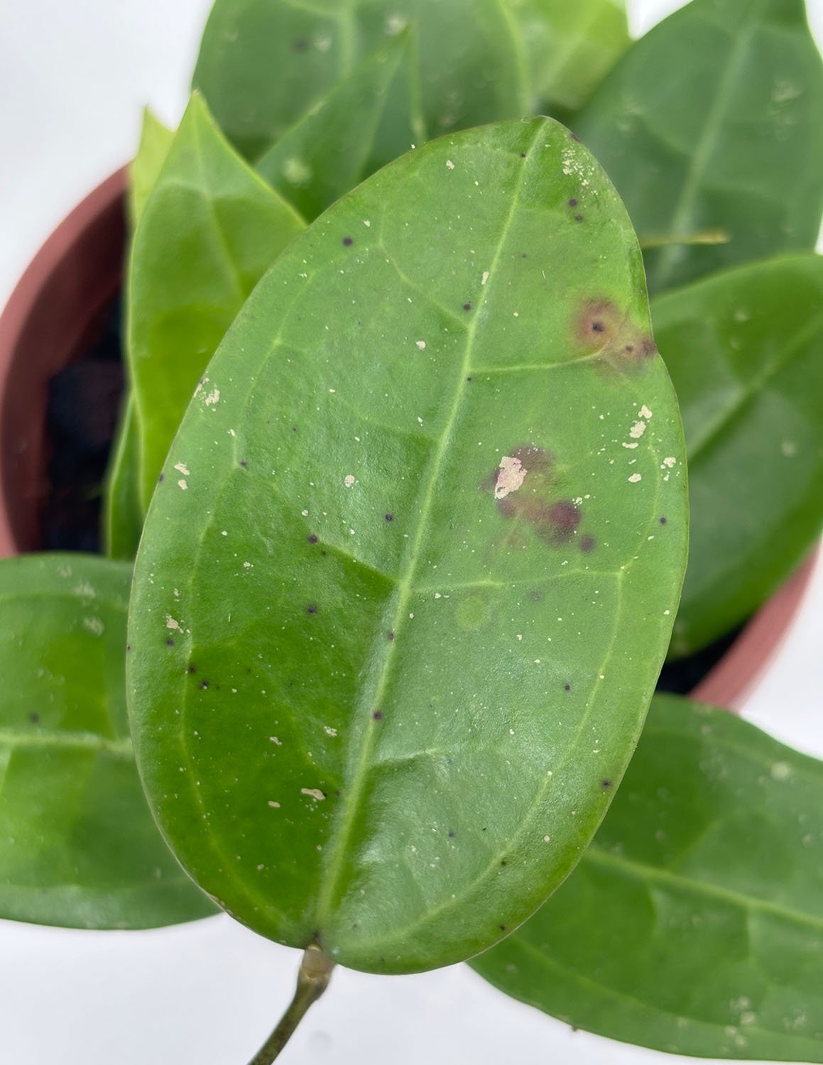 The leaves of Hoyas are waxy and succulent, and they will tolerate minimum levels of watering. We recommend allowing the soil to nearly completely dry out between waterings. The number one sign of underwatering is drooping, wilted leaves. You can tell if you are overwatering by the leaves yellowing and falling off. Overwatering may eventually lead to root rot.