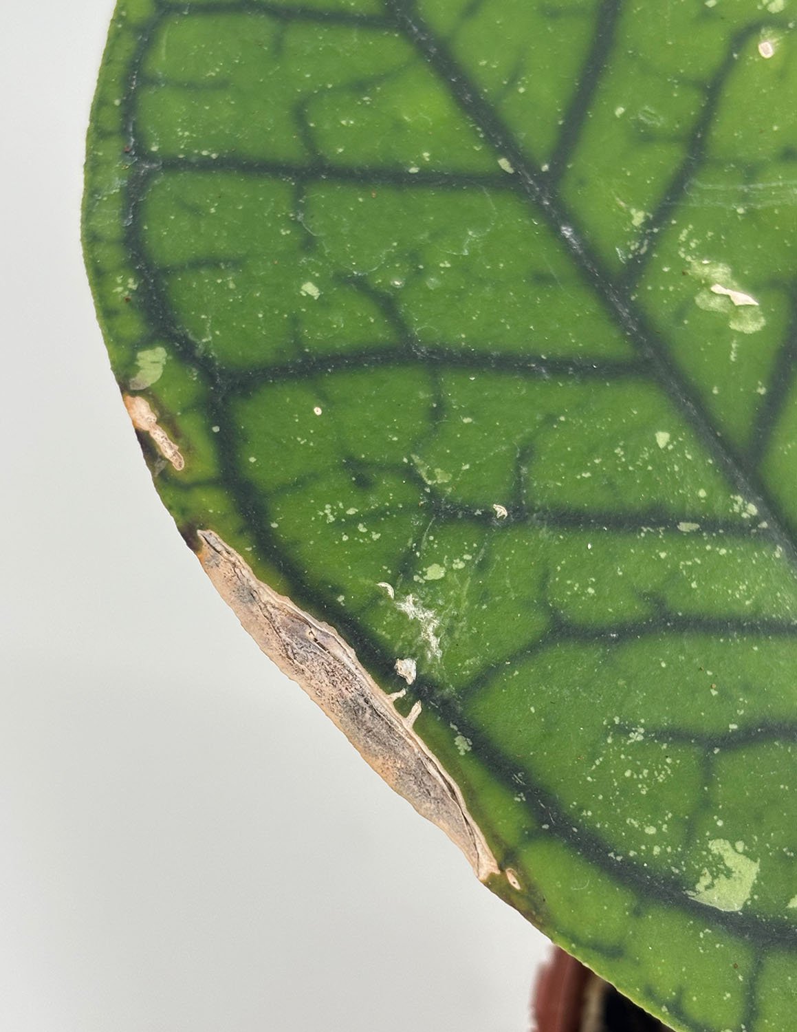 Hoya are epiphytic vines, meaning that they grow on the branches of trees in nature. The roots of epiphytes typically need very well-draining soil to prevent root rot. Hoyas will typically be happy with average household humidity but added humidity is a plus. This plant should be fertilized monthly through the spring and summer with a diluted general houseplant fertilizer. Cuttings can be rooted in water or soil. prefers bright indirect light. Brighter light will result in better color of the foliage but avoid direct sun which may burn the foliage.